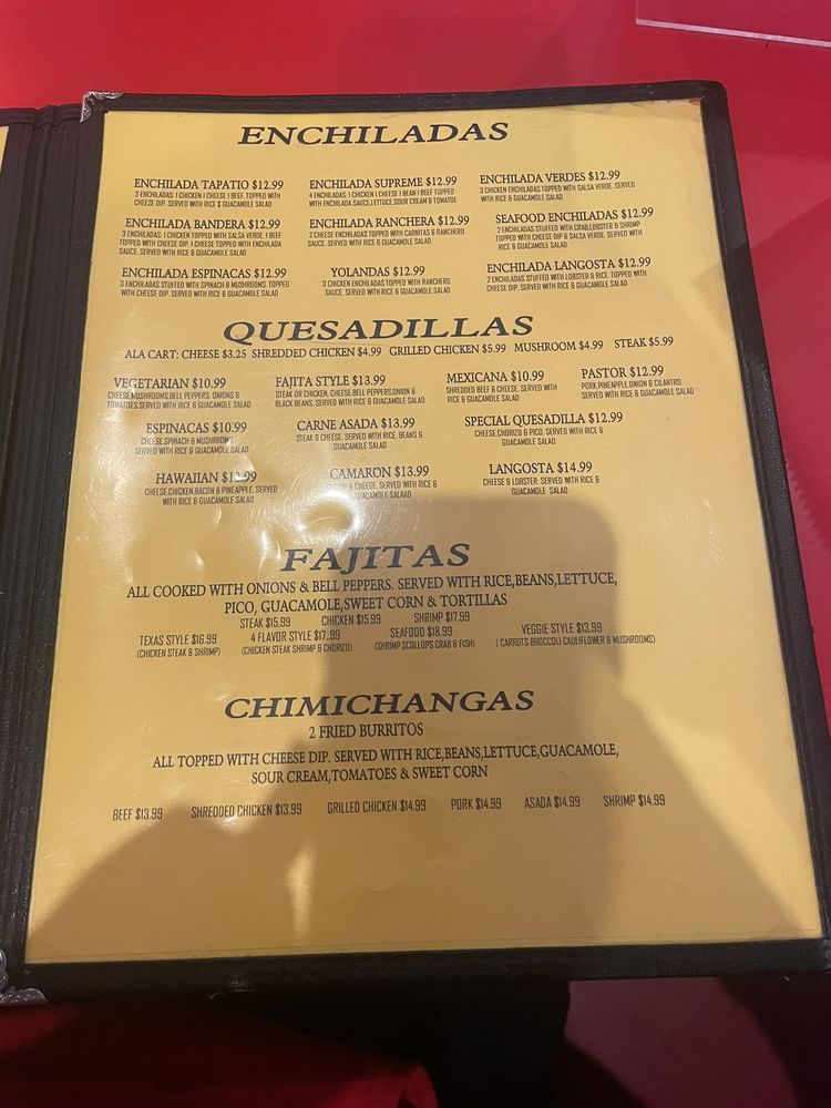enchiladas stuffed with lobster. Topped with cheese dip. Served with rice & beans