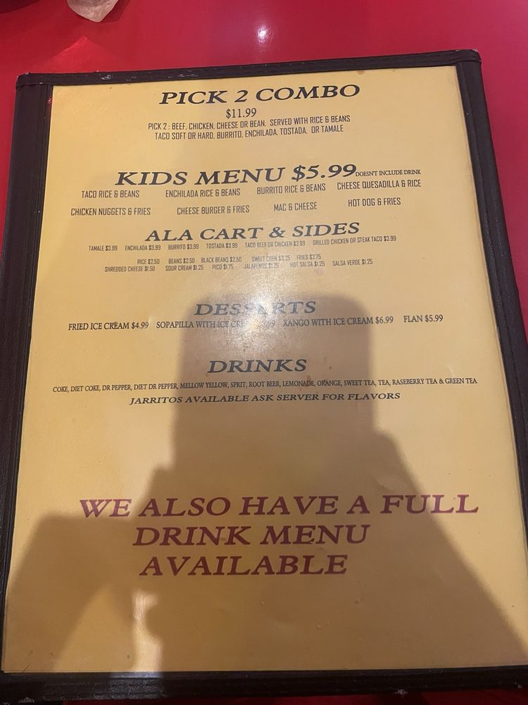 shrimp tacos on flour tortillas topped with lettuce & cheese. served with rice & beans